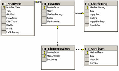 Chúng ta hãy xem xét một mô hình CSDL nhỏ (tạm gọi là SmallStore) mô tả việc quản lý đơn giản thông tin về việc bán hàng cho một cửa hàng.