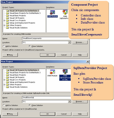 Chúng ta sẽ sử dụng các DNN Template đã được cài đặt tích hợp với VS.NET 2003 để tạo ra các Projects mới phục vụ cho phát triển modules trên DNN.